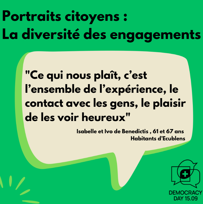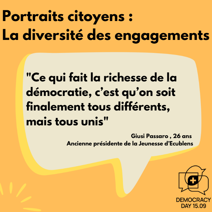 Pour Giusi, l’engagement commence par la curiosité : « D’abord observer, puis s’engager, être curieux. » Elle considère l’engagement comme un moyen de créer des liens et de renforcer la cohésion sociale. « Ce qui fait la richesse de la démocratie, c’est qu’on soit finalement tous différents, mais tous unis. »